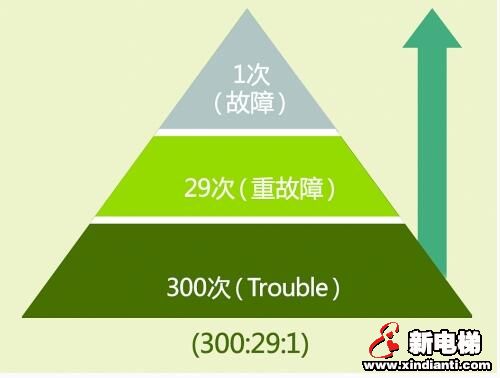 核心提示:據(jù)某城市96333電梯專用救援電話公布的數(shù)據(jù),一天電梯事故報(bào)警就達(dá)800次之多。 根據(jù)1931年美國(guó)的海因里希法則,即在機(jī)械事故中,死亡、重傷、輕傷和無(wú)傷害事故的比例為1:29:300,每發(fā)生330起意外事件,有300件未產(chǎn)生人員傷害,29件造成人員輕傷,1件導(dǎo)致重