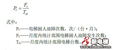 電梯困人故障發(fā)生次數(shù):月度內(nèi)統(tǒng)計(jì)范圍電梯困人故障發(fā)生次數(shù)與統(tǒng)計(jì)范圍電梯臺(tái)數(shù)之比。統(tǒng)計(jì)范圍困人故障發(fā)生次數(shù)指排除使用不良、建筑物其他設(shè)備不良、不可抗力等因素引起的所有困人故障發(fā)生次數(shù)。