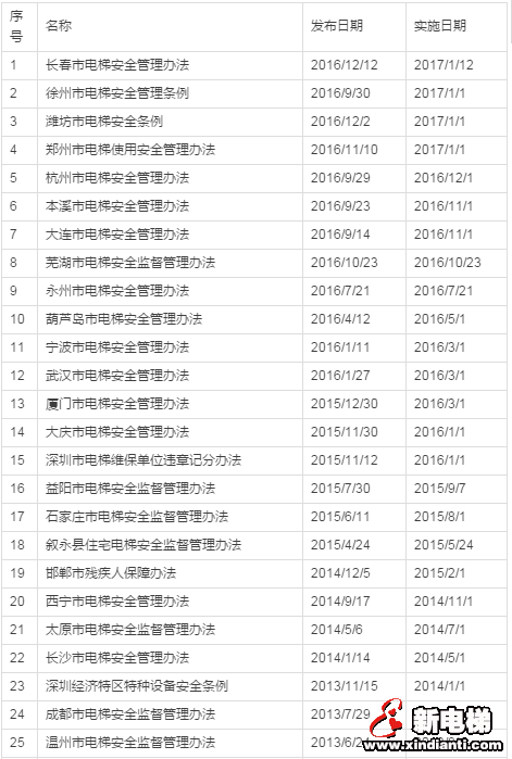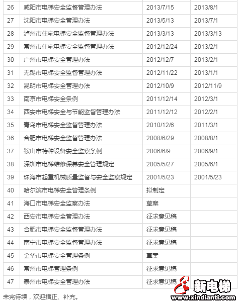 電梯相關(guān)地方監(jiān)察條例、管理辦法
