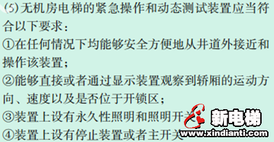 對(duì)于無(wú)機(jī)房電梯,就不能再稱(chēng)謂控制柜,而是緊急操作和動(dòng)態(tài)測(cè)試裝置,電梯安全技術(shù)規(guī)范TSG T7001-2009對(duì)其要求如下: