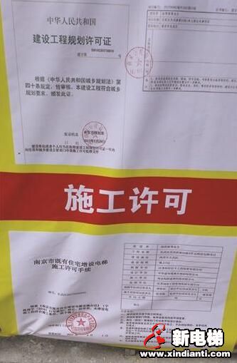 進(jìn)場施工的電梯公司銷售人員小喬介紹,之前個別已經(jīng)施工的小區(qū),都還只有“施工備案”手續(xù)。所以這張“001號許可證”還是挺有意義的。丹鳳新寓10幢3單元居民今年春節(jié)后向市住建和規(guī)劃部門申請,經(jīng)核準(zhǔn)政策及施工等各項要求,于本月4日拿到這張“電梯施工許可手續(xù)”,成為2016年9月出臺的《南京市既有住宅增設(shè)電梯實施辦法》后該區(qū)今年的第一張電梯施工許可證。加上規(guī)劃部門核發(fā)的“建設(shè)工程規(guī)劃許可證”,該工程某種程度上也成為“標(biāo)桿”。