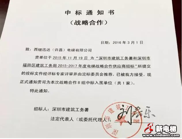 3月3日上午,深圳市建筑工務(wù)署在2015-2017年度電梯戰(zhàn)略合作簽訂儀式上,與西繼迅達(dá)電梯公司正式簽訂戰(zhàn)略合作協(xié)議,這標(biāo)志著西繼迅達(dá)電梯被深圳市建筑工務(wù)署正式列為合格電梯供應(yīng)商。