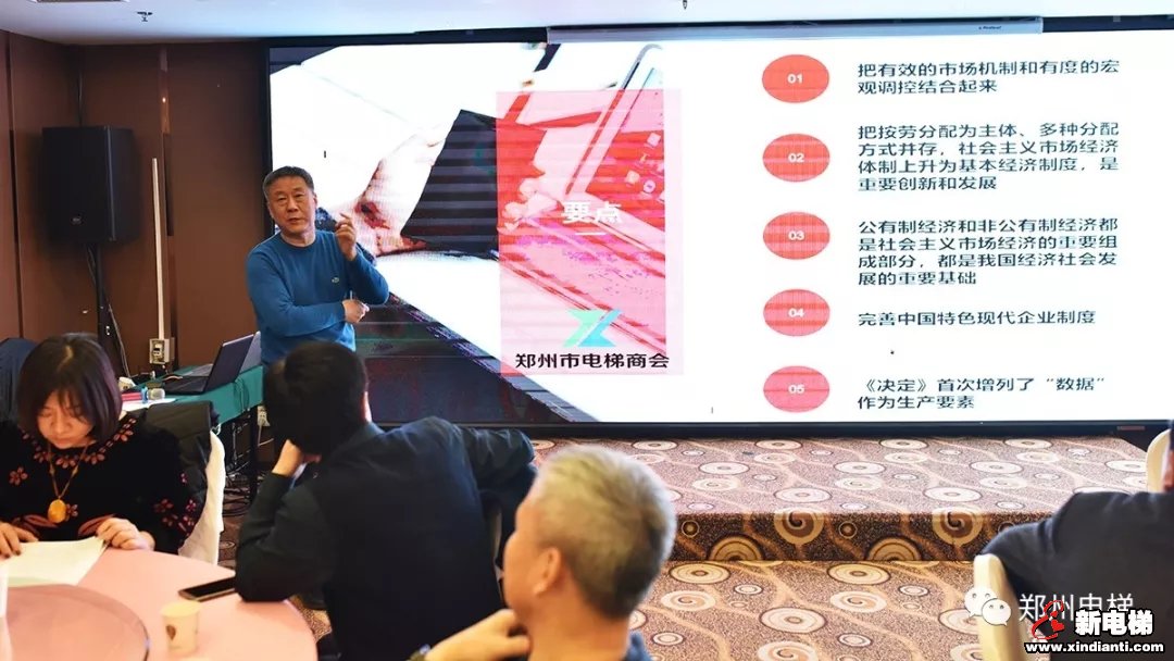 鄭州市電梯商會(huì)辛建國會(huì)長與大家一道共同學(xué)習(xí)“十九屆四中全會(huì)報(bào)告關(guān)于社會(huì)主義基本經(jīng)濟(jì)制度”精神。
