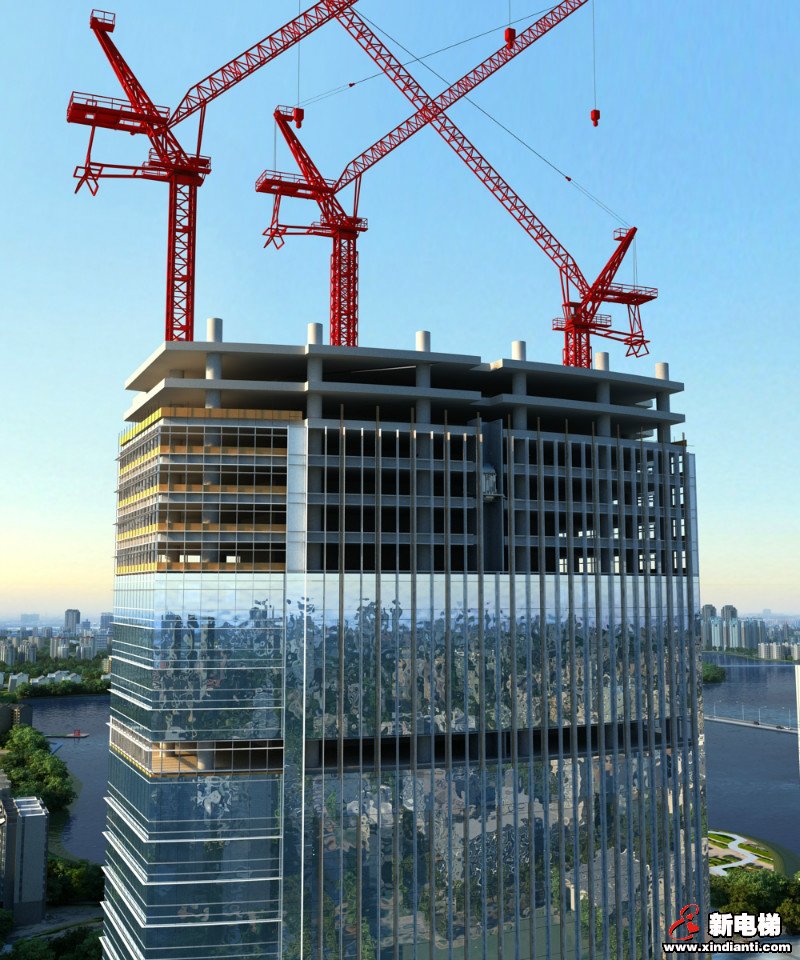 采用上下鋼梁液壓平臺,隨建筑隨時生長,安全可靠