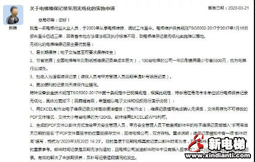【回復】謝謝您的建議。關于鼓勵使用無紙化電梯維保記錄的政策和規(guī)定,請查閱《質檢總局特種設備局關于鼓勵使用無紙化電梯維保記錄的指導意見》(質檢特函〔2016〕3號)和《電梯維護保養(yǎng)規(guī)則》(TSG T5002-2017)第十條的內容。
