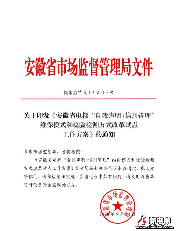 安徽省發(fā)布電梯“自我聲明+信用管理”維保模式和檢驗檢測方式改革試點工作方案,方案指出,調(diào)整試點電梯檢驗檢測周期新安裝電梯監(jiān)督檢驗后6年 以內(nèi),每3年檢驗1次,在不實施檢驗的年份每年檢測1次;15年以內(nèi)的電梯,每2年檢驗1次,試點開展按需維保的電梯使用單位及維保單位,具備條件 的電梯使用、維保單位檢測本單位所管理、維保的電梯,不得檢 測非本單位管理、維保的電梯。