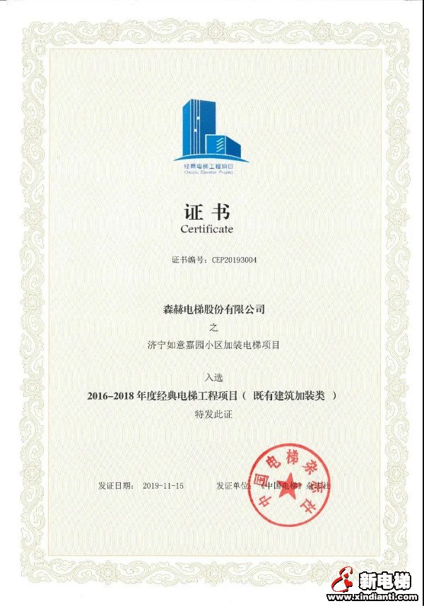 榮獲經(jīng)典電梯工程項(xiàng)目(既有建筑加裝類)獎(jiǎng)項(xiàng)