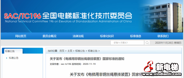 關(guān)于發(fā)布《電梯用非鋼絲繩懸掛裝置》國家標(biāo)準(zhǔn)的通知