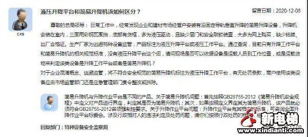 液壓升降平臺和簡易升降機(jī)有啥區(qū)別?總局回復(fù)!