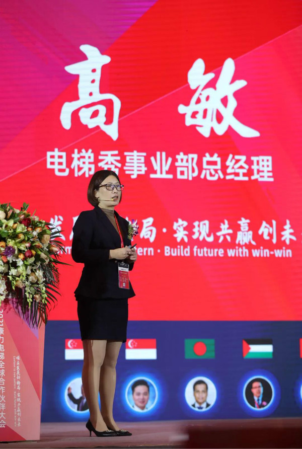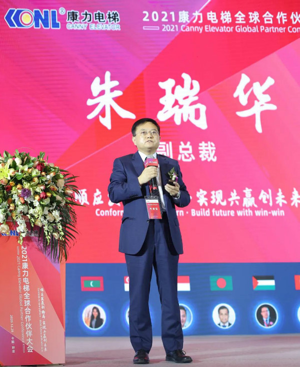 公司副總裁、市場傳媒及國際業(yè)務中心執(zhí)行總裁朱瑞華在大會上分析了國內外市場形勢,介紹了康力品牌地位與海外業(yè)務發(fā)展。當前行業(yè)兩極分化趨勢明顯,優(yōu)勢資源持續(xù)向頭部企業(yè)集中,行業(yè)整合步伐加快,而康力連續(xù)第4年躋身全球十大電梯制造商、領銜中國電梯品牌,并作為行業(yè)唯一代表參與起草《GB/T 39654-2020品牌評價原則與基礎》,民族電梯品牌建設躍升至全新高度。