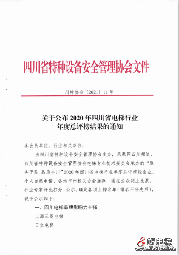 2020年四川省電梯行業(yè)年度總評(píng)榜結(jié)果公布
