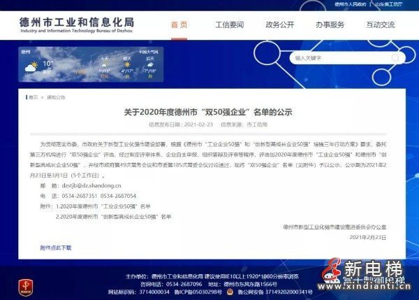 近日,德州市工信局公示了2020年度德州市“工業(yè)企業(yè)50強(qiáng)”和德州市“創(chuàng)新型高成長企業(yè)50強(qiáng)”名單。山東富士制御電梯有限公司上榜德州市“創(chuàng)新型高成長企業(yè)50強(qiáng)”名單。