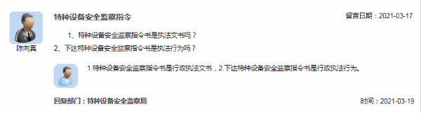 2個特種設備監(jiān)察指令書問題,總局這樣回復