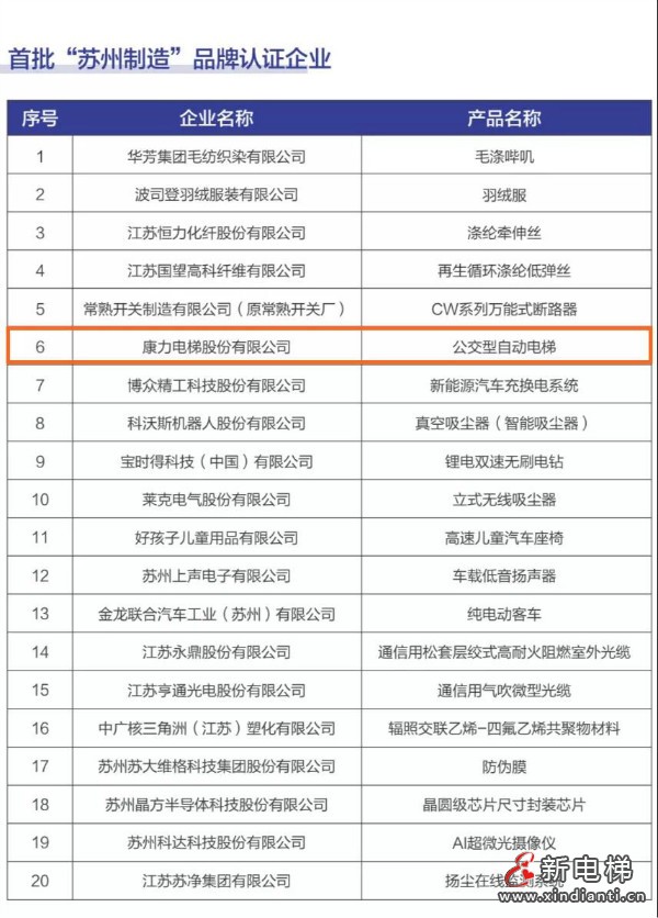 制在蘇州·行銷全球 | 康力電梯入選首批“蘇州制造”品牌認(rèn)證企業(yè)