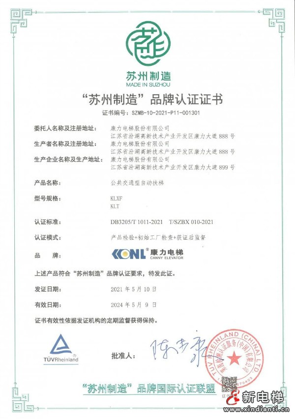 當(dāng)前位置:首頁>電梯資訊 >電梯企業(yè)Enterprises>制在蘇州·行銷全球 | 康力電梯入選首批“蘇州制造”品牌認(rèn)證企業(yè)