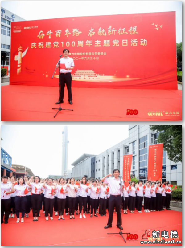 核心提示:6月30日上午,慶祝建黨100周年主題黨日系列活動在康力電梯總部產(chǎn)業(yè)園隆重舉行。汾湖高新區(qū)黨工委委員、紀(jì)工委書記鄧運華,公司董事長、黨委書記王友林,總裁朱琳昊,黨委副書記朱琳懿、孫全根,副總裁秦成松、朱瑞華、吳賢等領(lǐng)導(dǎo)和部分黨員干部職工出席儀式。