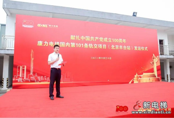 公司總裁朱琳昊主持發(fā)運儀式開場時說:“在全國上下喜迎中國共產(chǎn)黨成立100周年的輝煌時刻,康力電梯以國內(nèi)第101條軌交項目北京豐臺站發(fā)運,來獻禮建黨百年。這是個特別的紀(jì)念,也標(biāo)志著康力電梯高質(zhì)量發(fā)展進入到一個新的發(fā)展階段。”