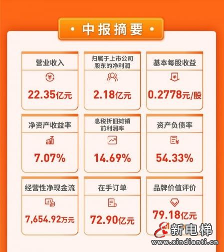 康力電梯上半年營收再創(chuàng)新高,上半年營業(yè)收入22.35億元,同比增長26.64%
