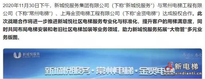 去年11月,新城悅服務(wù)集團(tuán)有限公司與常州電梯工程有限公司、上海金賢電梯工程有限公司達(dá)成股權(quán)合作。公司采取股權(quán)對賭的策略,共同把電梯維保業(yè)務(wù)做大。