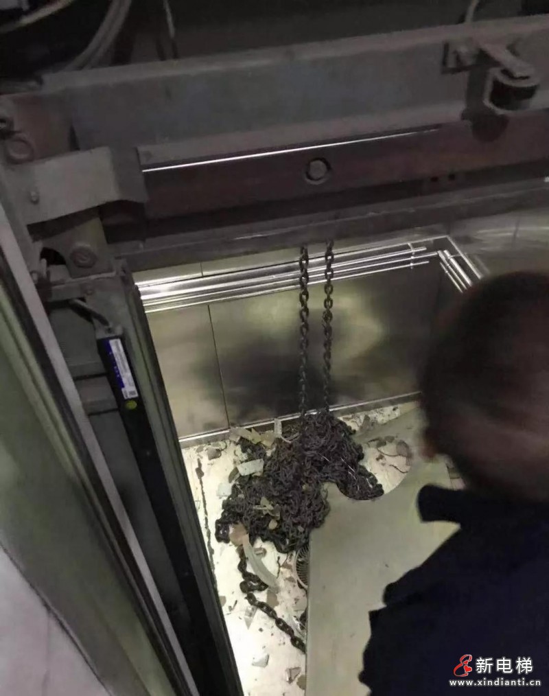 電梯補(bǔ)償鏈砸穿轎頂,5人被困!電梯補(bǔ)償鏈二次保護(hù)太重要了!