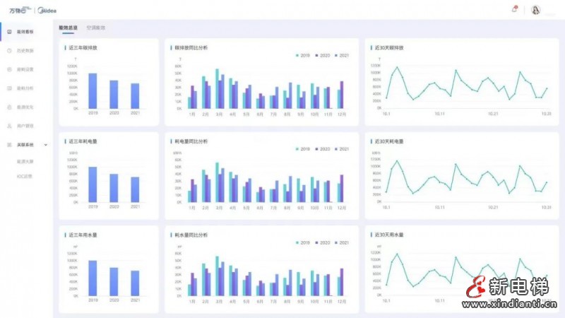 通過能源管理系統(tǒng),不僅可以全面了解建筑能耗情況,還可通過能效分析預(yù)測能耗趨勢,以用戶體驗(yàn)為導(dǎo)向,打造綠色智慧建筑。能效總覽包含建筑的碳排、耗電、耗水三個維度數(shù)據(jù),可全面掌握建筑整體能耗態(tài)勢。此外,空調(diào)能效實(shí)時展現(xiàn)當(dāng)前空調(diào)能效數(shù)據(jù),包含當(dāng)日累計耗電量及分項(xiàng)數(shù)據(jù)、實(shí)時COP指標(biāo)、實(shí)時冷凍水?dāng)?shù)據(jù)指標(biāo)等;并對室內(nèi)平均溫度、室內(nèi)平均濕度、室外溫度、室外濕度等環(huán)境指標(biāo)統(tǒng)計分析,預(yù)測分析環(huán)境趨勢。