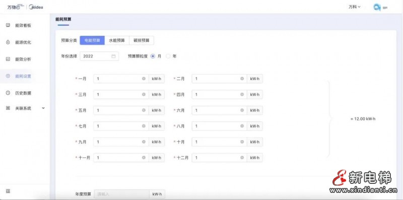 根據(jù)實(shí)際預(yù)算管控顆粒度,運(yùn)維人員可對電能、水能、碳排不同能耗,設(shè)置單月或整年預(yù)算指標(biāo)。通過對指標(biāo)達(dá)成情況進(jìn)行檢測,結(jié)合平臺能源優(yōu)化建議,不斷讓實(shí)際能耗目標(biāo)低于管控目標(biāo),達(dá)成節(jié)能目的。
