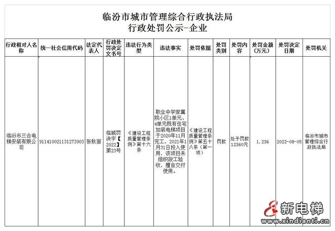 山西臨汾:一電梯公司加裝電梯未竣工驗(yàn)收擅自交付使用,罰!