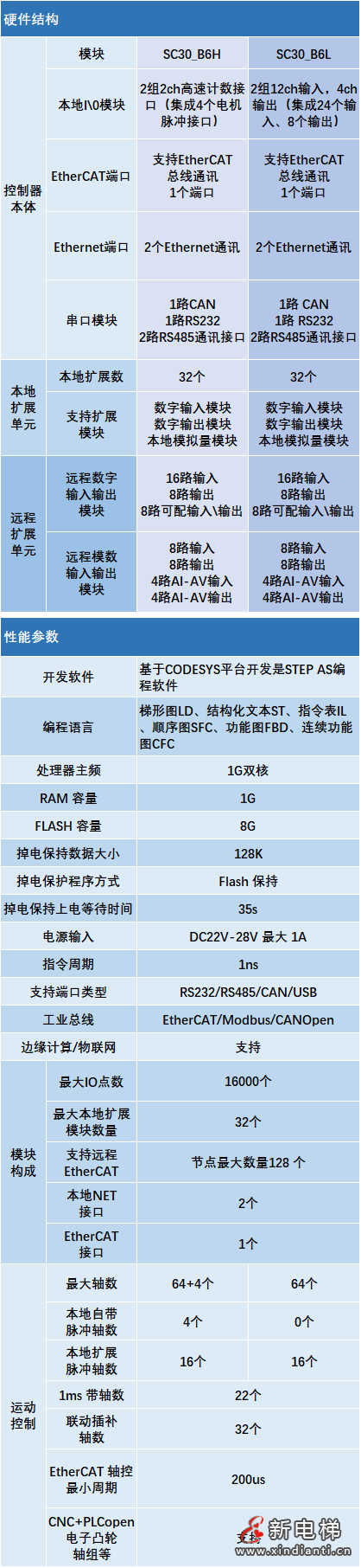 上節(jié)課我們介紹了SC20運(yùn)動(dòng)控制器的硬件結(jié)構(gòu)及功能,本節(jié)課我們一起來(lái)認(rèn)識(shí)  SC30。SC30系列控制器目前制有兩版本,分別是SC30-B6H高配版SC30-B6L標(biāo)準(zhǔn)版。