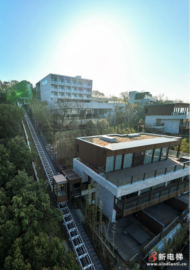 關(guān)鍵時(shí)刻萊茵電梯挺身而出,為其量身打造了一套完整的提升方案,將一臺(tái)載重為1600kg的斜行電梯設(shè)計(jì)在不同功能的樓宇之間,完美的解決了酒店這一難題。該電梯設(shè)有5個(gè)層站,游客能夠安全、便捷地到達(dá)不同高度的每一功能區(qū),與此同時(shí),乘坐電梯時(shí),南太湖美景亦可盡收眼底。