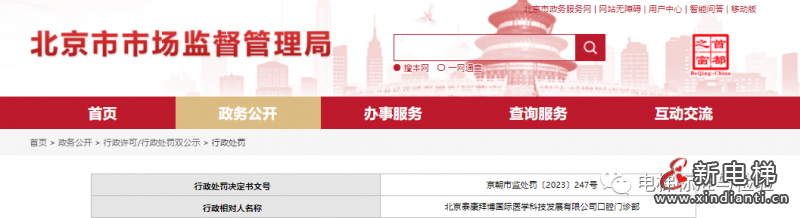 近日,北京市朝陽區(qū)市場(chǎng)監(jiān)督管理局對(duì)北京泰康拜博國際醫(yī)學(xué)科技發(fā)展有限公司口腔門診部作出行政處罰。自2022年11月9日至執(zhí)法人員開展現(xiàn)場(chǎng)檢查時(shí)(2023年1月13日),當(dāng)事人在電梯超出定期檢驗(yàn)有效期后(檢驗(yàn)有效期至2022年11月8日),仍然繼續(xù)使用。截至2023年2月26日,當(dāng)事人仍未取得上述電梯檢驗(yàn)合格報(bào)告。行政處罰決定書文號(hào):京朝市監(jiān)處罰〔2023〕247號(hào)。罰款60000元。?
