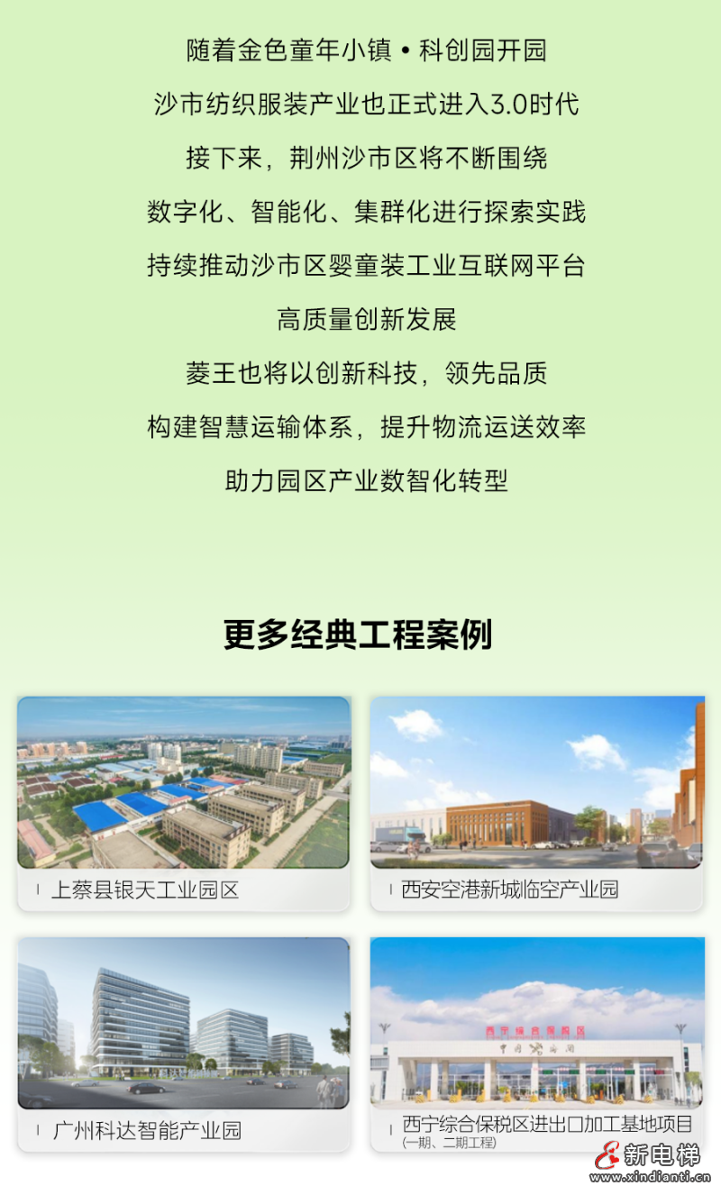 隨著金色童年小鎮(zhèn)·科創(chuàng)園開園,沙市紡織服裝產(chǎn)業(yè)也正式進入3.0時代。接下來,荊州沙市區(qū)將不斷圍繞數(shù)字化、智能化、集群化進行探索實踐,持續(xù)推動沙市區(qū)嬰童裝工業(yè)互聯(lián)網(wǎng)平臺,高質(zhì)量創(chuàng)新發(fā)展,菱王也將以創(chuàng)新科技,領(lǐng)先品質(zhì)構(gòu)建智慧運輸體系,提升物流運送效率助力園區(qū)產(chǎn)業(yè)數(shù)智化轉(zhuǎn)型。
