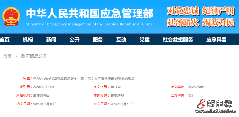 應急管理部令第14號《生產安全事故罰款處罰規(guī)定》3月1日起施行!
