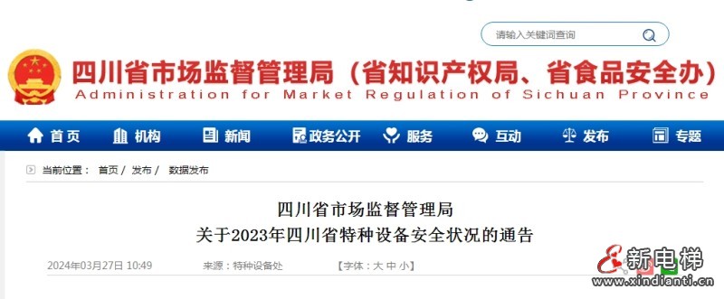 四川省市場(chǎng)監(jiān)督管理局關(guān)于2023年四川省特種設(shè)備安全狀況的通告