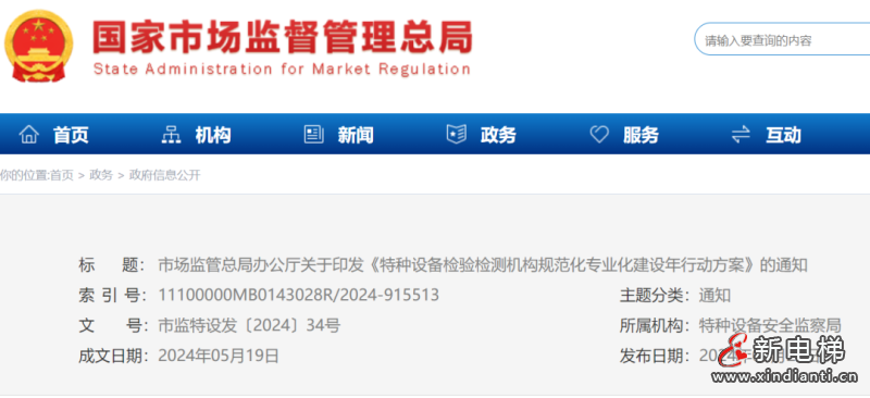 2024年5月19日市場監(jiān)管總局辦公廳發(fā)布關(guān)于印發(fā)《特種設(shè)備檢驗(yàn)檢測機(jī)構(gòu)規(guī)范化專業(yè)化建設(shè)年行動(dòng)方案》的通知