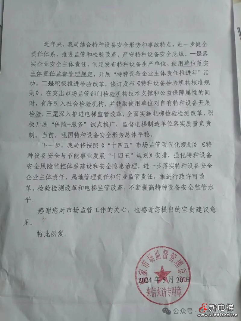 總局回復(fù)行業(yè)泰斗李老的信訪,明確當(dāng)前電梯監(jiān)管的先進(jìn)性